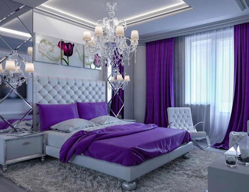 - Для маленьких спален: Используйте светлые оттенки фиолетового в сочетании с белым или кремовым.