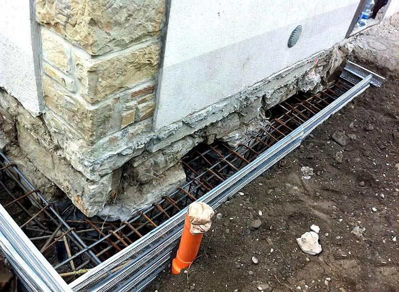 Если фундамент сильно поврежден, требуется усиление. Существует несколько способов усиления фундамента, в т.ч.: