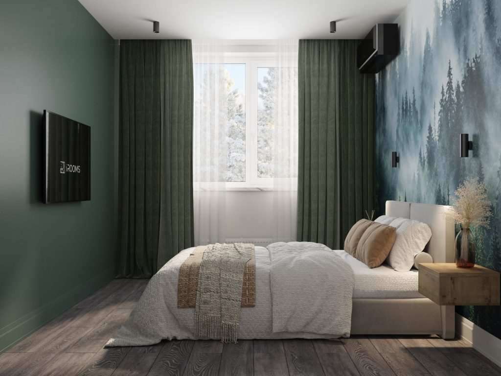 Стоит ли выделять одну из стен другим оттенком зелёного, или же использовать контрастный цвет, чтобы добавить динамики? Не перегрузит ли это пространство, особенно если спальня небольшая? И какой цвет лучше всего сочетается с выбранным оттенком зелёного для акцентной стены? Может быть, стоит добавить текстуру, например, декоративную штукатурку или кирпичную кладку, вместо другого цвета?