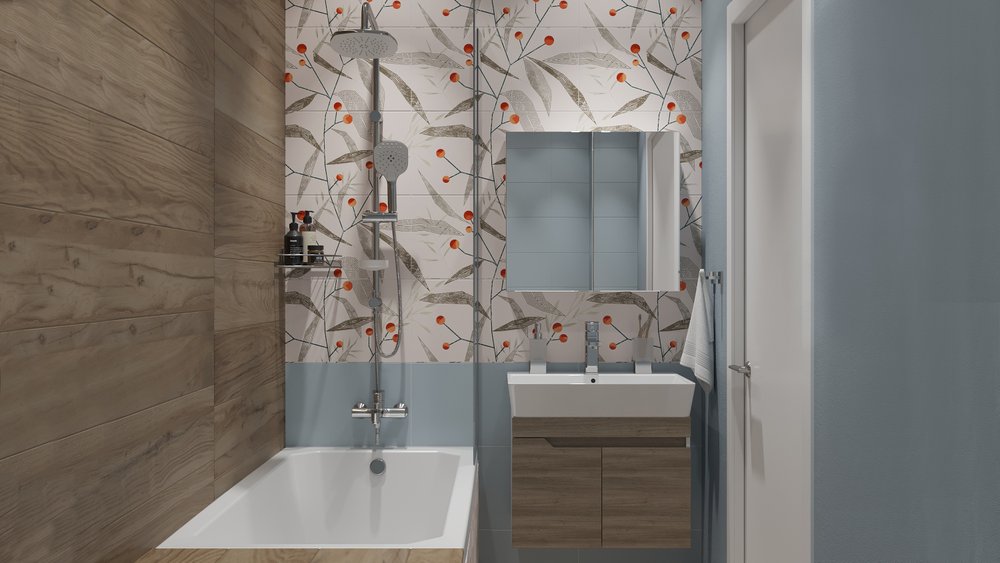 - Плитка с цветочным узором: Плитка с цветочным узором может стать главным акцентом ванной комнаты.