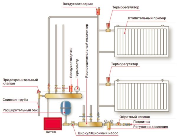 - Трубопроводная система: Соединяет все компоненты системы и обеспечивает циркуляцию теплоносителя.